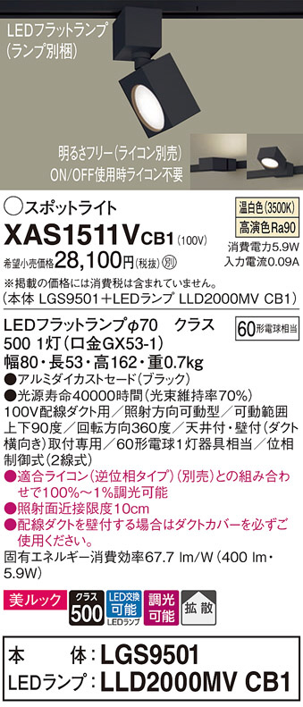 Panasonic ¥¹¥Ý¥Ã¥È¥é¥¤¥È XAS1511VCB1
