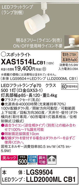 Panasonic ¥¹¥Ý¥Ã¥È¥é¥¤¥È XAS1514LCB1