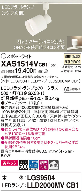 Panasonic ¥¹¥Ý¥Ã¥È¥é¥¤¥È XAS1514VCB1