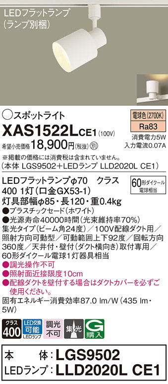 Panasonic ¥¹¥Ý¥Ã¥È¥é¥¤¥È XAS1522LCE1