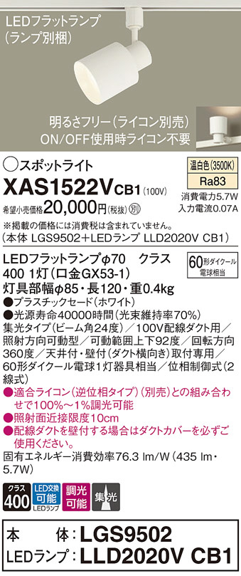 Panasonic ¥¹¥Ý¥Ã¥È¥é¥¤¥È XAS1522VCB1