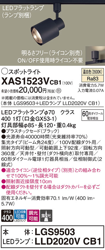 Panasonic ¥¹¥Ý¥Ã¥È¥é¥¤¥È XAS1523VCB1