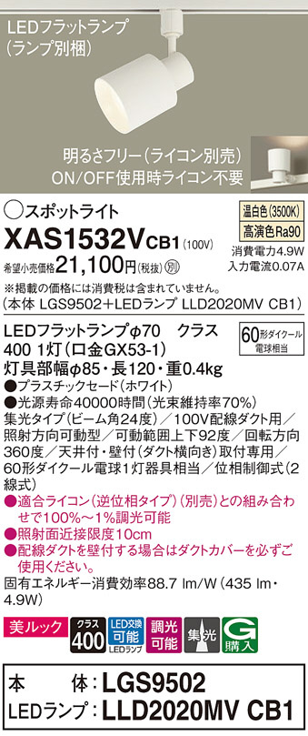 Panasonic ¥¹¥Ý¥Ã¥È¥é¥¤¥È XAS1532VCB1