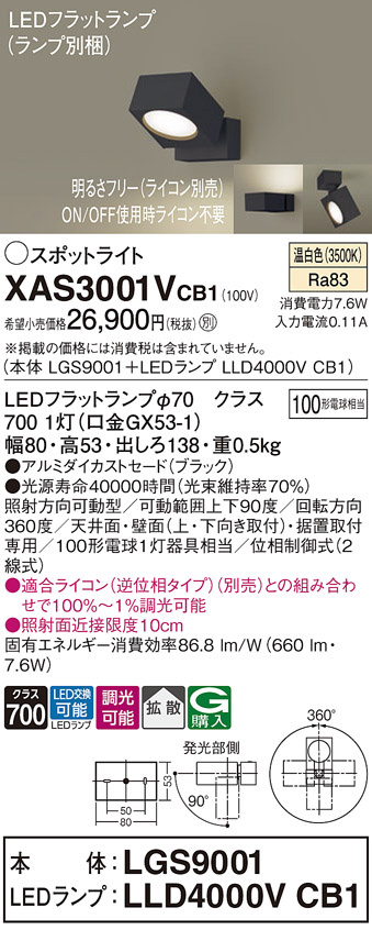 Panasonic ¥¹¥Ý¥Ã¥È¥é¥¤¥È XAS3001VCB1