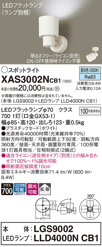 Panasonic ¥¹¥Ý¥Ã¥È¥é¥¤¥È XAS3002NCB1
