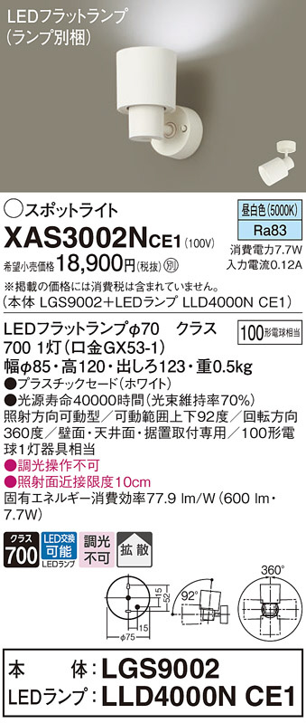 Panasonic ¥¹¥Ý¥Ã¥È¥é¥¤¥È XAS3002NCE1