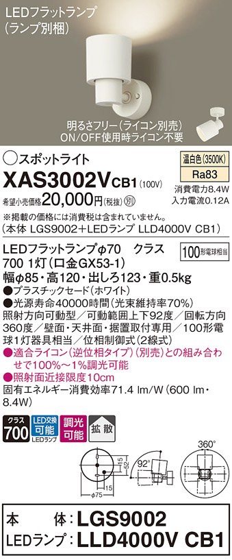 Panasonic ¥¹¥Ý¥Ã¥È¥é¥¤¥È XAS3002VCB1