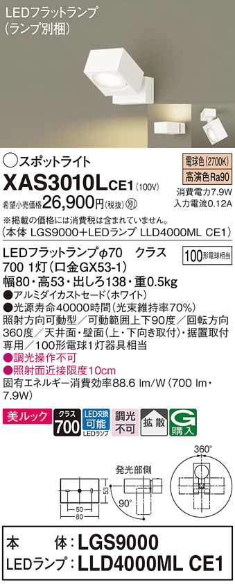Panasonic ¥¹¥Ý¥Ã¥È¥é¥¤¥È XAS3010LCE1