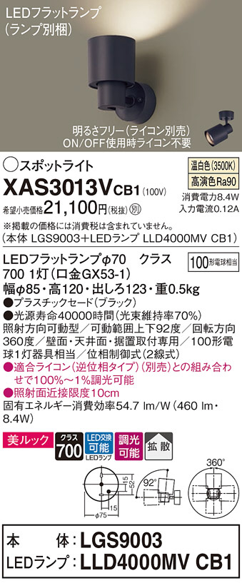 Panasonic ¥¹¥Ý¥Ã¥È¥é¥¤¥È XAS3013VCB1