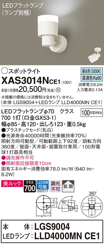 Panasonic ¥¹¥Ý¥Ã¥È¥é¥¤¥È XAS3014NCE1