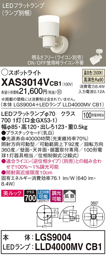Panasonic ¥¹¥Ý¥Ã¥È¥é¥¤¥È XAS3014VCB1