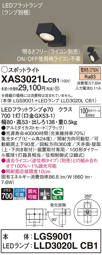 Panasonic ¥¹¥Ý¥Ã¥È¥é¥¤¥È XAS3021LCB1