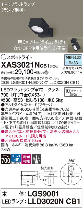 Panasonic ¥¹¥Ý¥Ã¥È¥é¥¤¥È XAS3021NCB1