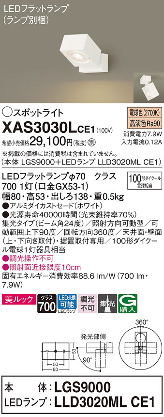 Panasonic ¥¹¥Ý¥Ã¥È¥é¥¤¥È XAS3030LCE1