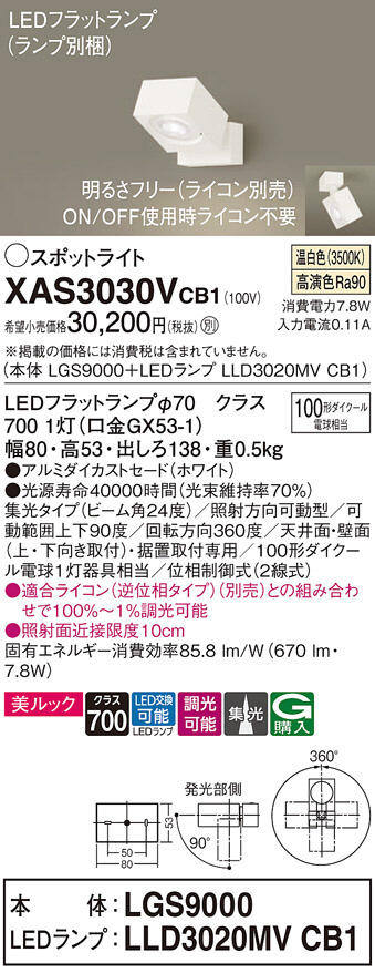 Panasonic ¥¹¥Ý¥Ã¥È¥é¥¤¥È XAS3030VCB1
