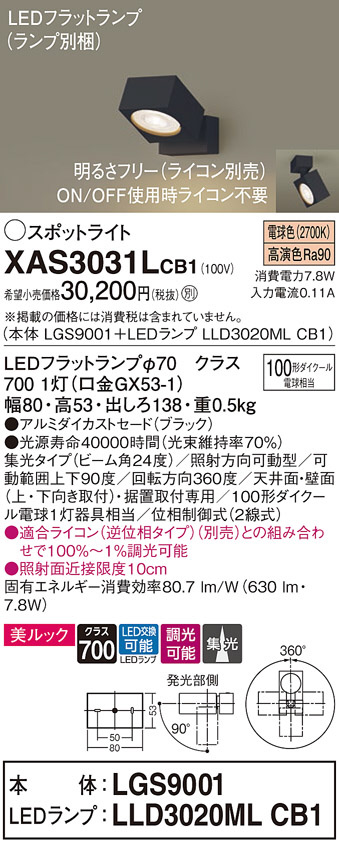 Panasonic ¥¹¥Ý¥Ã¥È¥é¥¤¥È XAS3031LCB1
