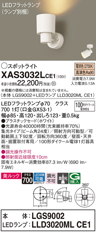 Panasonic ¥¹¥Ý¥Ã¥È¥é¥¤¥È XAS3032LCE1