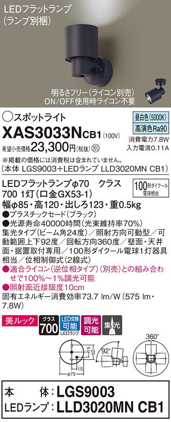 Panasonic ¥¹¥Ý¥Ã¥È¥é¥¤¥È XAS3033NCB1