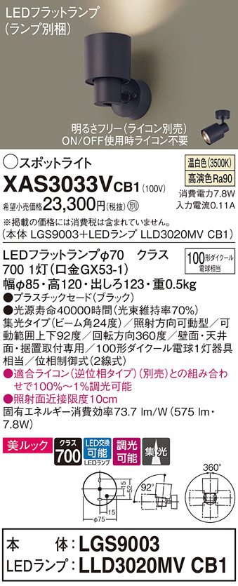 Panasonic ¥¹¥Ý¥Ã¥È¥é¥¤¥È XAS3033VCB1