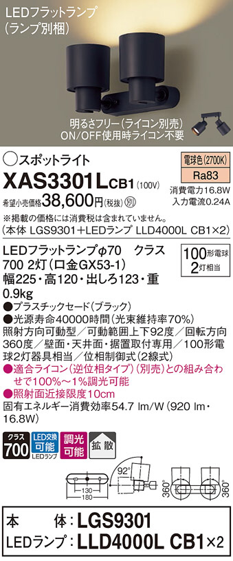Panasonic ¥¹¥Ý¥Ã¥È¥é¥¤¥È XAS3301LCB1