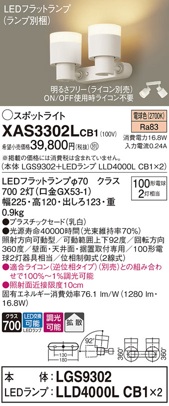 Panasonic ¥¹¥Ý¥Ã¥È¥é¥¤¥È XAS3302LCB1