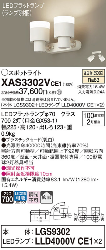 Panasonic ¥¹¥Ý¥Ã¥È¥é¥¤¥È XAS3302VCE1