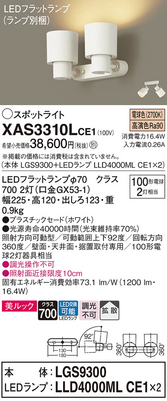 Panasonic ¥¹¥Ý¥Ã¥È¥é¥¤¥È XAS3310LCE1
