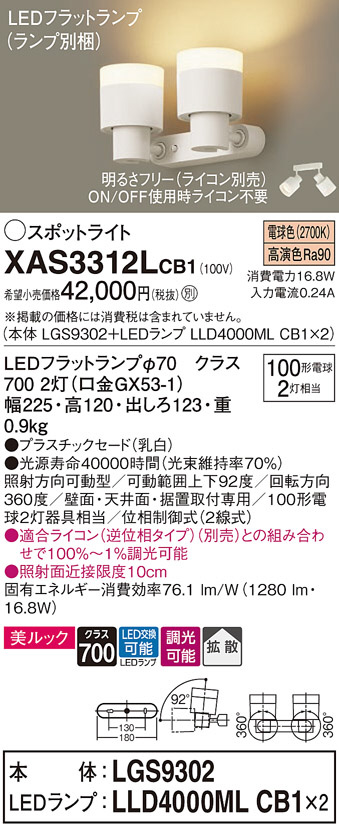 Panasonic ¥¹¥Ý¥Ã¥È¥é¥¤¥È XAS3312LCB1