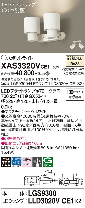 Panasonic ¥¹¥Ý¥Ã¥È¥é¥¤¥È XAS3320VCE1