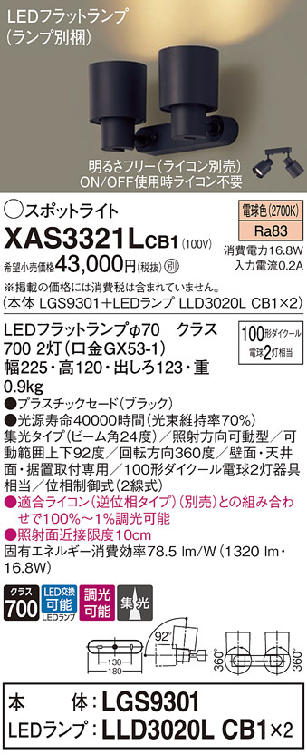 Panasonic ¥¹¥Ý¥Ã¥È¥é¥¤¥È XAS3321LCB1