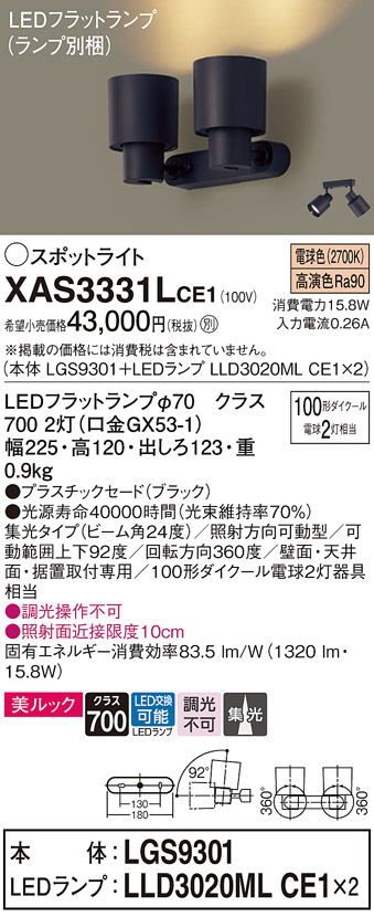 Panasonic ¥¹¥Ý¥Ã¥È¥é¥¤¥È XAS3331LCE1