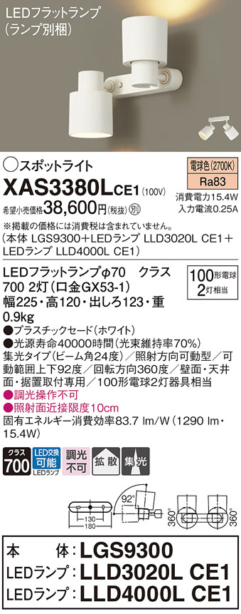 Panasonic ¥¹¥Ý¥Ã¥È¥é¥¤¥È XAS3380LCE1