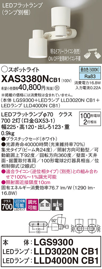 Panasonic ¥¹¥Ý¥Ã¥È¥é¥¤¥È XAS3380NCB1