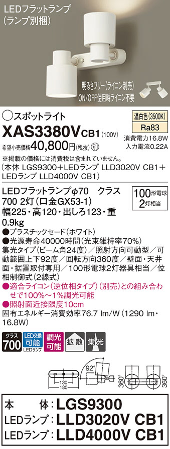 Panasonic ¥¹¥Ý¥Ã¥È¥é¥¤¥È XAS3380VCB1