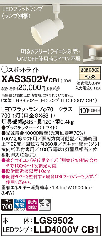 Panasonic ¥¹¥Ý¥Ã¥È¥é¥¤¥È XAS3502VCB1