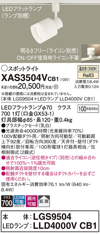 Panasonic ¥¹¥Ý¥Ã¥È¥é¥¤¥È XAS3504VCB1