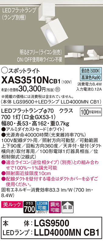 Panasonic ¥¹¥Ý¥Ã¥È¥é¥¤¥È XAS3510NCB1
