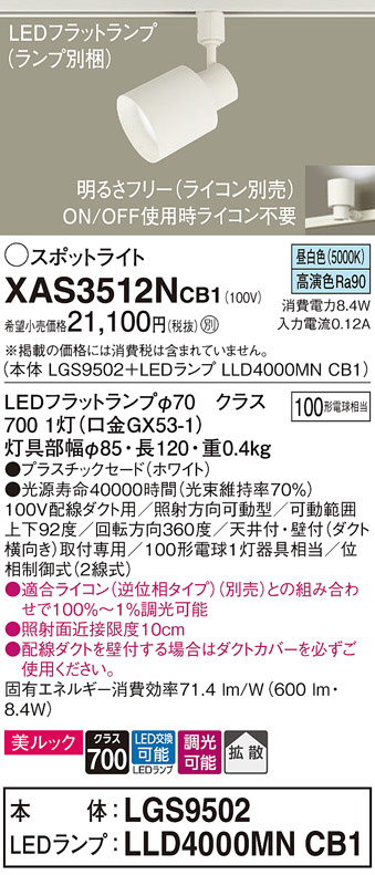 Panasonic ¥¹¥Ý¥Ã¥È¥é¥¤¥È XAS3512NCB1
