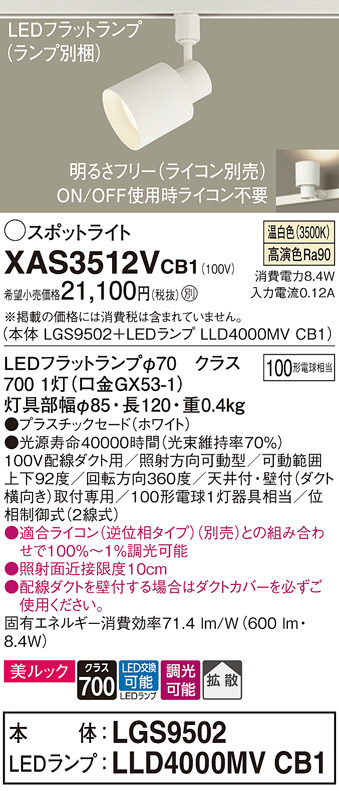 Panasonic ¥¹¥Ý¥Ã¥È¥é¥¤¥È XAS3512VCB1