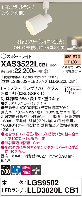 Panasonic ¥¹¥Ý¥Ã¥È¥é¥¤¥È XAS3522LCB1