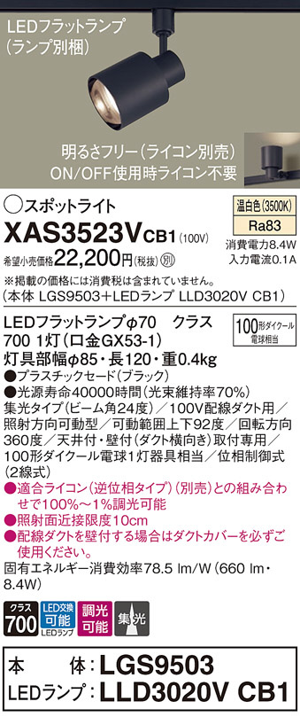 Panasonic ¥¹¥Ý¥Ã¥È¥é¥¤¥È XAS3523VCB1