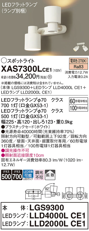 Panasonic ¥¹¥Ý¥Ã¥È¥é¥¤¥È XAS7300LCE1