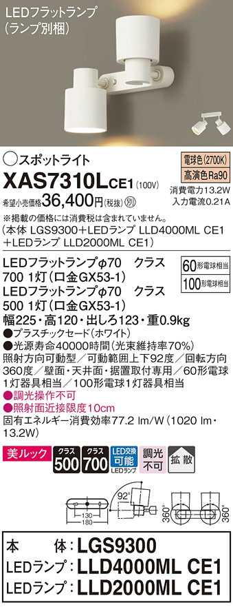 Panasonic ¥¹¥Ý¥Ã¥È¥é¥¤¥È XAS7310LCE1