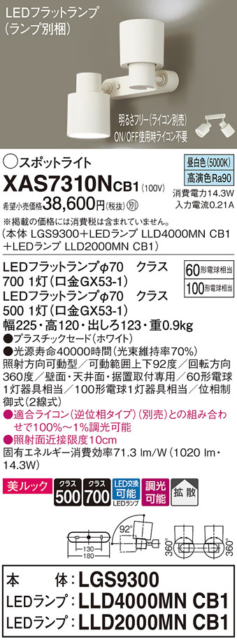 Panasonic ¥¹¥Ý¥Ã¥È¥é¥¤¥È XAS7310NCB1