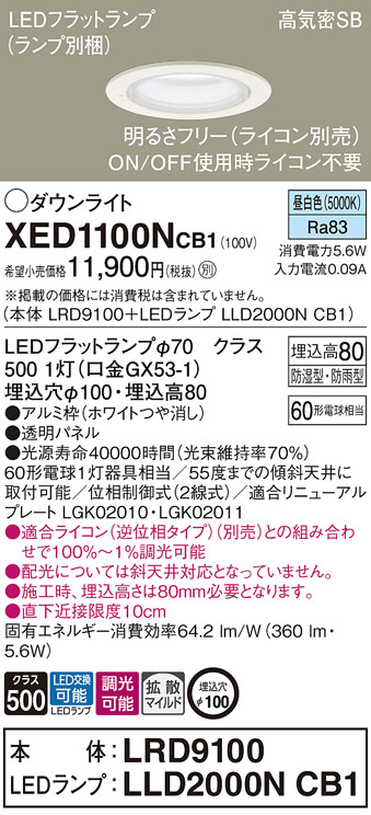 Panasonic ¥¨¥¯¥¹¥Æ¥ê¥¢¥À¥¦¥ó¥é¥¤¥È XED1100NCB1