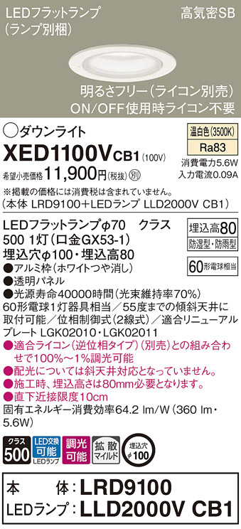 Panasonic ¥¨¥¯¥¹¥Æ¥ê¥¢¥À¥¦¥ó¥é¥¤¥È XED1100VCB1