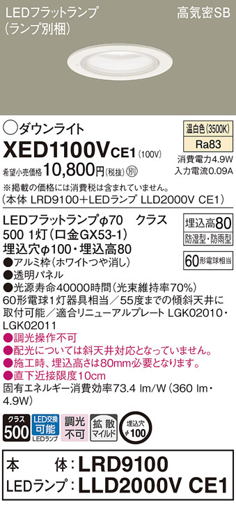 Panasonic ¥¨¥¯¥¹¥Æ¥ê¥¢¥À¥¦¥ó¥é¥¤¥È XED1100VCE1