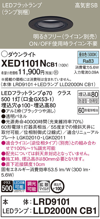 Panasonic ¥¨¥¯¥¹¥Æ¥ê¥¢¥À¥¦¥ó¥é¥¤¥È XED1101NCB1