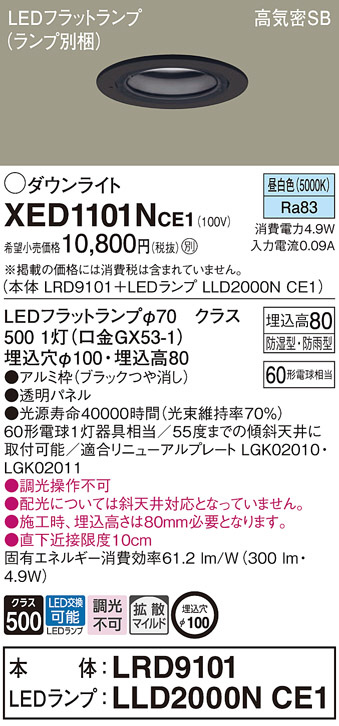 Panasonic ¥¨¥¯¥¹¥Æ¥ê¥¢¥À¥¦¥ó¥é¥¤¥È XED1101NCE1