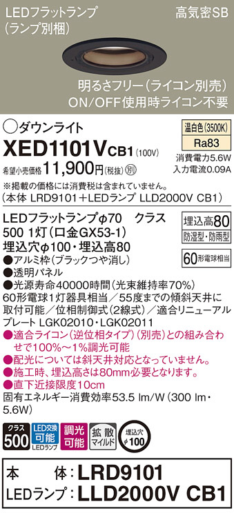 Panasonic ¥¨¥¯¥¹¥Æ¥ê¥¢¥À¥¦¥ó¥é¥¤¥È XED1101VCB1